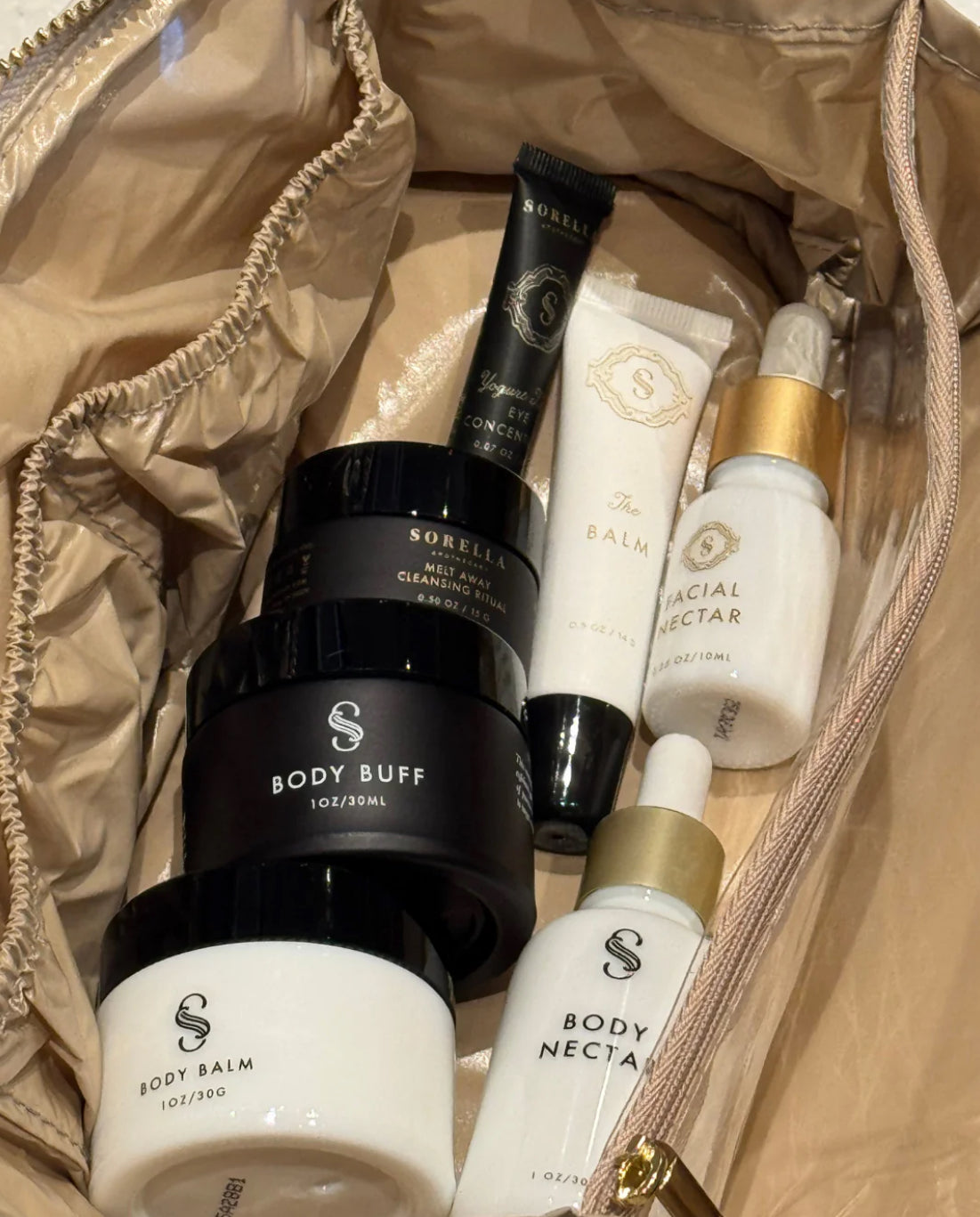 Sorella Apothecary's The Ritual is your invitation to elevate your daily skincare routine into a meaningful act of self-care. This luxurious glazing collection features our most nourishing occlusives, including Facial and Body Nectar, designed to deliver that coveted glassy, luminous skin from head to toe. Beautifully presented in our signature essentials bag, this deeply moisturizing collection suits all skin types and helps you create a restorative ritual that honors both your skin and yourself.